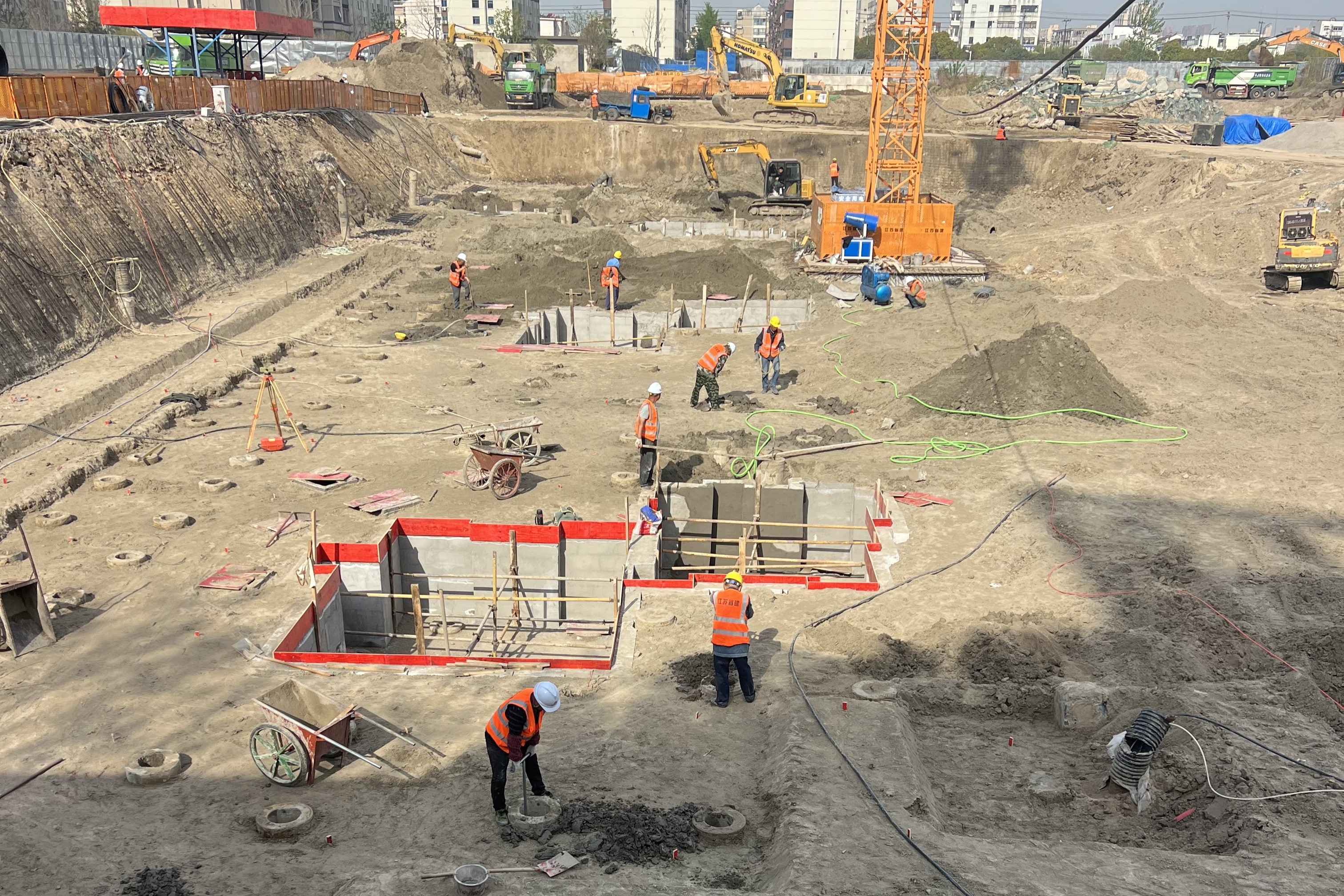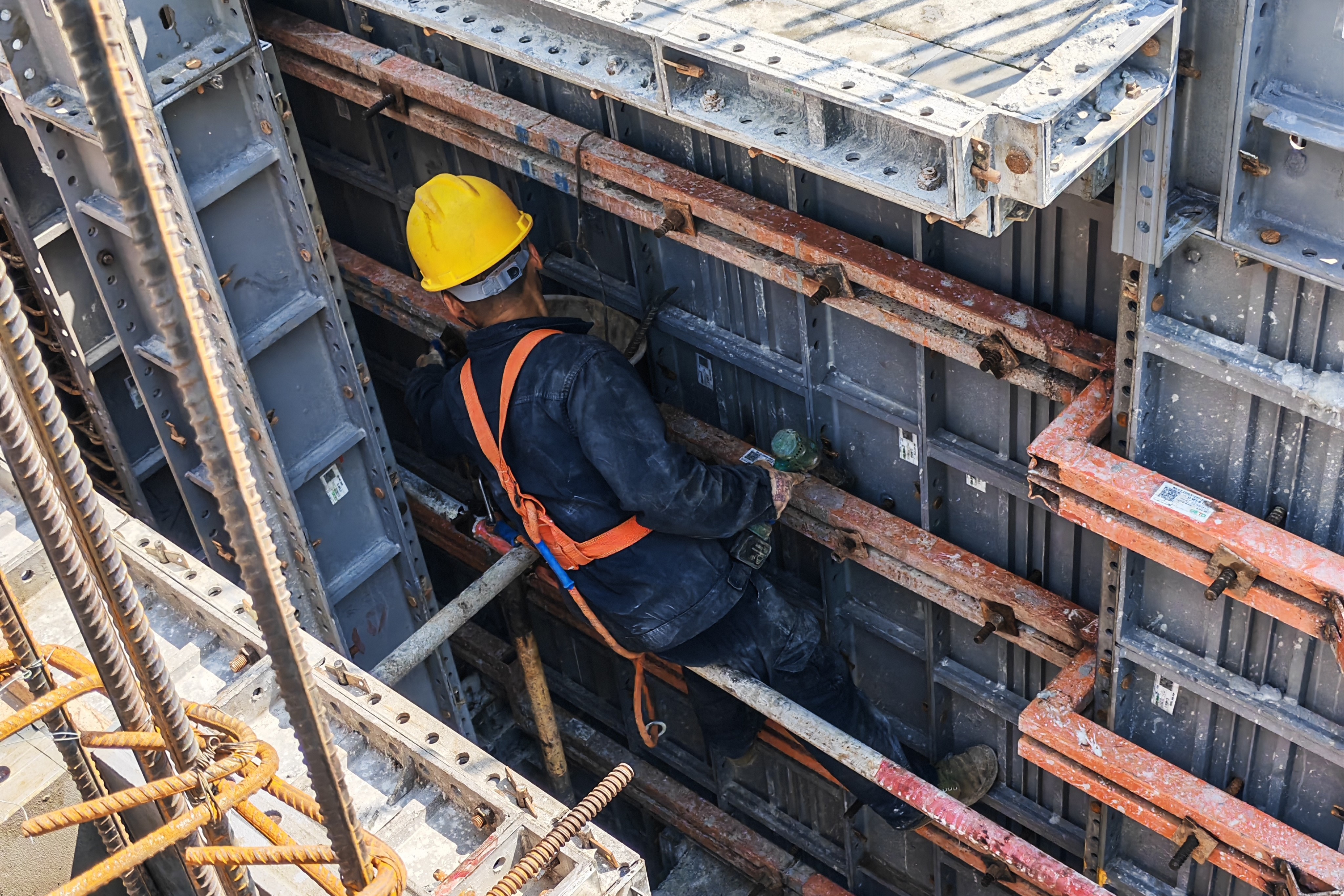 伴随着机械轰鸣声,百余名建设者抢抓晴好天气开展施工,坚守岗位,连续奋战,有条不紊地进行钢筋绑扎、混凝土浇筑等工作,争分夺秒推进施工进度,聚力突破进度瓶颈,助力项目优质履约。