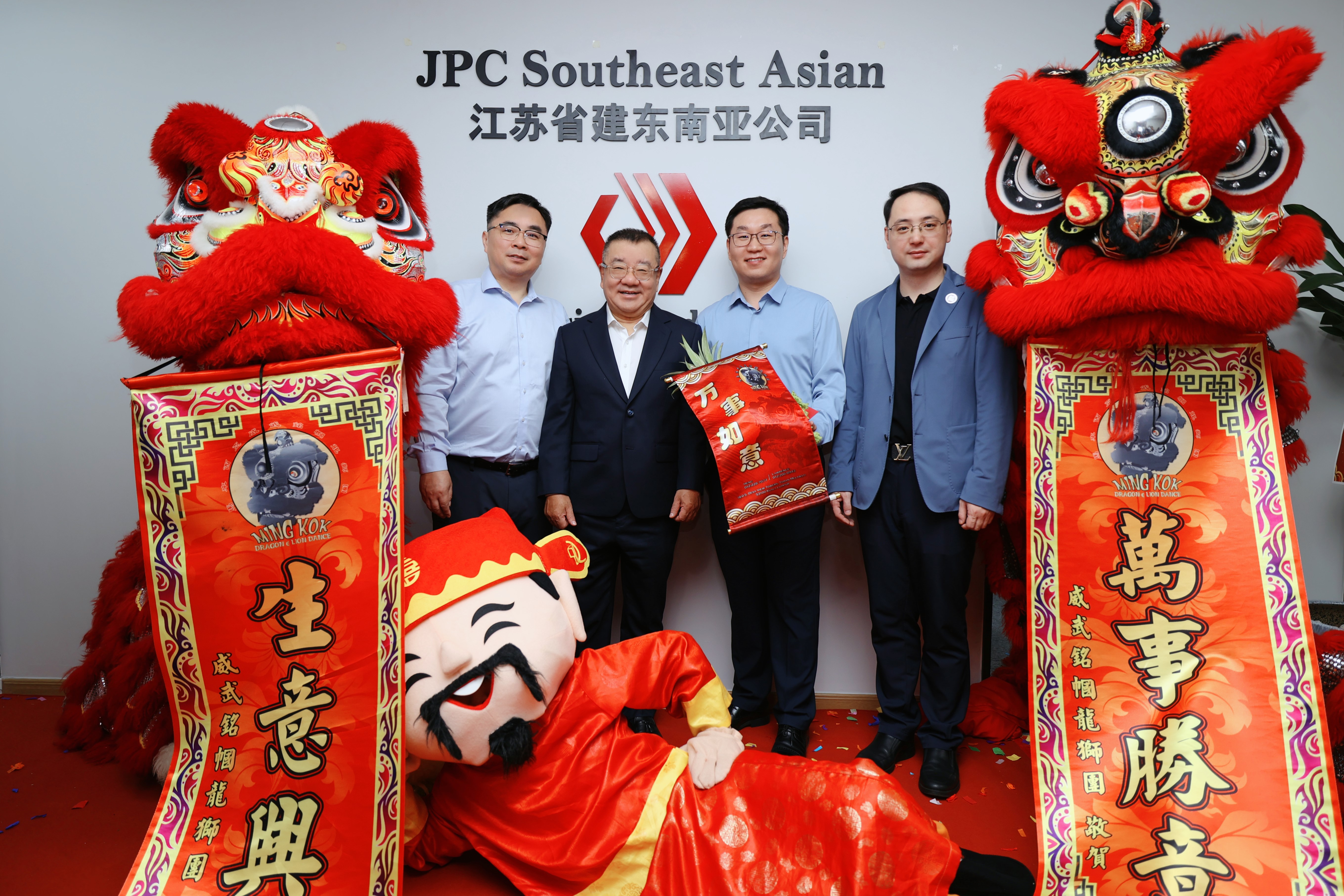在热烈的掌声中,金红双狮腾跃起舞,蒋宁和出席活动的领导嘉宾共同为东南亚公司总部揭牌,崭新的招牌在狮舞祥瑞中熠熠生辉,标志着集团海外事业发展迈向全新阶段,开启全新征程。