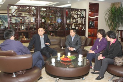 在参观集团文化气息浓厚的办公场所后,宾主双方进行了亲切友好的座谈。陈正华董事长首先向徐苏宁、王红云等一行简单汇报了江苏省建改制两年多来的发展情况,并介绍了集团远景发展规划。