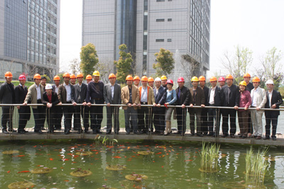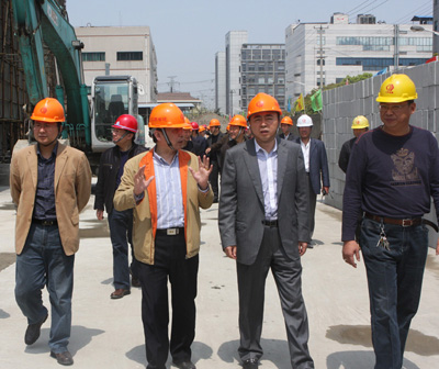 当天上午,在上海分公司总经理倪陵宝的带领下,与会人员首先来到上海市北工业新区,参观了项目施工现场,实地察看了项目的生产工作,并在现场召开了项目座谈会。会上,倪陵宝向与会代表介绍了上海市北项目的总体概况以及市北项目的工程质量管理、科技创新等工作。在听取汇报后,仇天青总裁对市北新区项目的施工管理给予了高度评价,他希望上海分公司能够继续发扬优良作风,在上海区域中心市场有一个更高层次的突破。座谈会上,项目部代表李爱平也对项目的生产工作作了汇报。