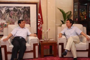 ■陈正华董事长陪同成际贵副局长(左)参观集团总部