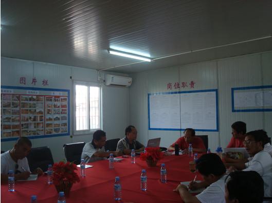 中期验收组抵达工程所在地几内亚比绍后,向中国驻几内亚比绍使馆经商处居朝清参赞详细汇报了中期验收工作的计划安排,认真听取了居朝清参赞对本次中期验收工作的指示和意见。在5月25日下午召开的项目中期验收动员会上,中验组宣布了中期验收工作日程安排和检查重点,听取了项目技术组组长、监理工程师和设计代表对工程实施情况的汇报。