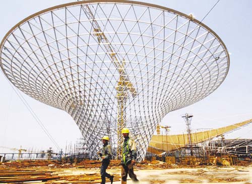 从上海世博会“一轴四馆”来看,仅中国馆就需要使用2.2万吨钢材和125吨电焊条。据宝钢集团相关负责人介绍,仅去年,宝钢集团就累计向上海世博园提供各类钢材约10万吨。