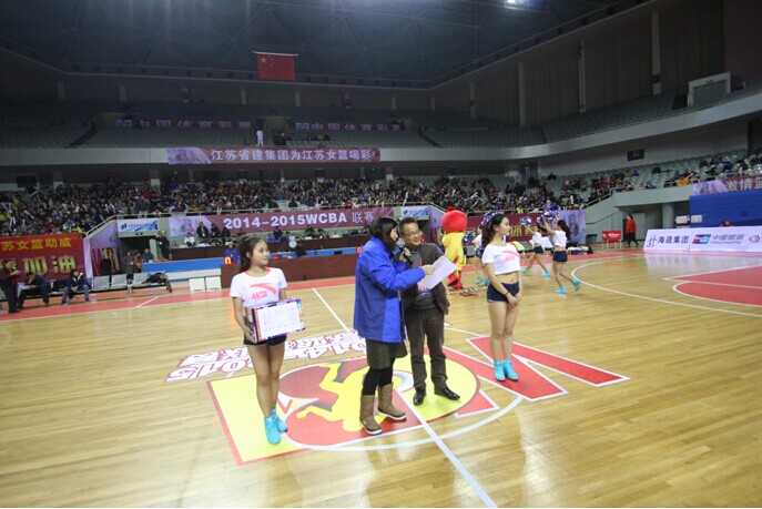 1月10日19点30分,由江苏省建集团冠名赞助的2014-2015中国女子篮球联赛常规赛第二阶段比赛在南京五台山体育馆展开首回合较量。在这场焦点战中,江苏永联队以77比65战胜八一队,取得常规赛第二阶段比赛的“开门红”。集团公司总裁仇天青,党委副书记仇伟明,总裁助理李嘉增、张方兵,省体育局及五台山体育中心相关领导,以及身着统一服装的300名省建员工代表到场观看比赛,为江苏女篮加油助威。
