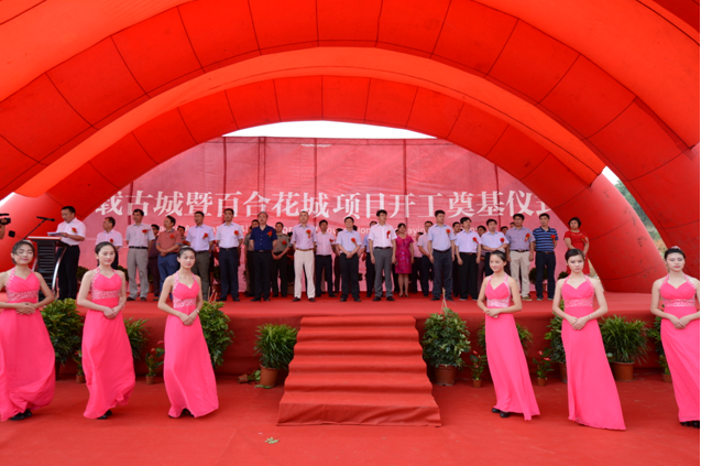 7月1日上午,由集团投资开发建设的江西万载古城暨百合花城奠基仪式隆重举行。宜春市委常委黄玉剑、副市长凌卫,万载县委书记胡新明、县长陈虹、县委副书记熊宏伟、县人大主任周洪波、县政协主席肖德明,集团公司董事长陈正华、副总裁吴春宏、集团万载瑞辰文化旅游发展有限公司总经理张藜,以及宜春市、万载县各有关负责同志,项目各参建单位代表共300余人参加活动。奠基仪式由万载县县长陈虹主持。
