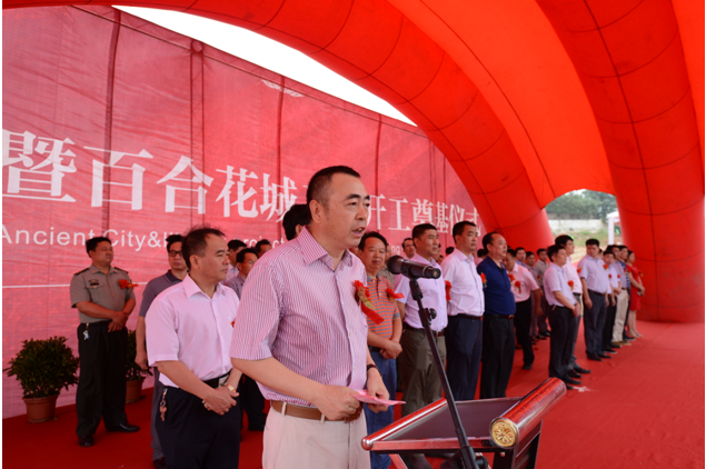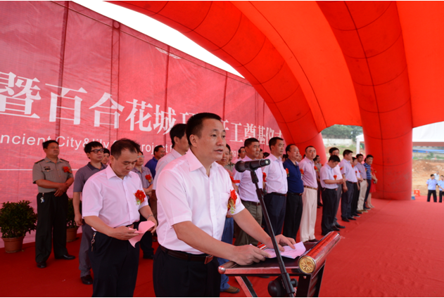 万载县委书记胡新民代表万载县四套班子对项目的开工建设表示热烈祝贺。胡新民说,万载古城·百合花城项目,是我县发展旅游经济的一个重大突破,也是我县旅游开发的重点项目之一,具有巨大的经济效益、社会效益和环境效益,对推动经济可持续发展具有重要意义。2013年,我们开始对外招商,最终选定了江苏省建集团。不仅仅因其是建筑行业的先驱,更重要在于,江苏省建品质至上的理念使我们更加信赖。我们相信,在未来的几年,万载古城·百合花城项目将会建成一个大型的4A级旅游综合体,它将成为万载在旅游行业的一张崭新的名片,将万载推向全国乃至全世界。
