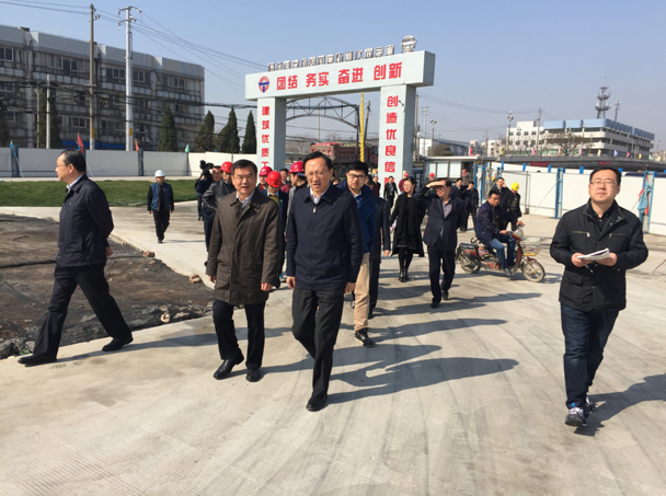 缪瑞林市长一行到达现场后,亲切问候了奋战在一线的南京同力建设集团全体参建人员。在施工现场,缪瑞林认真听取了项目负责人关于工地生产和安全文明工作开展情况的汇报,详细询问了相关制度落实情况及工期节点,并就环境保护、扬尘管控等措施进行了检查指导。