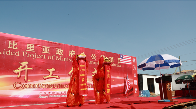 利比里亚当地时间4月28日下午3点,由中国政府援建、江苏省建集团承建的援利比里亚政府办公楼项目开工仪式在利比里亚蒙罗维亚市隆重举行。利比里亚共和国总统H. E. Ellen Johnson-Sirleaf、利比里亚共和国工程部部长Min.W. Gyude Moore、中国驻利比里亚共和国大使馆张越以及江苏省建项目参建人员出席了仪式。