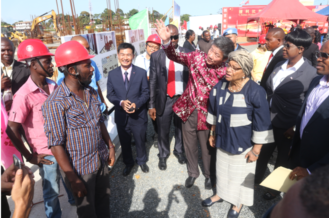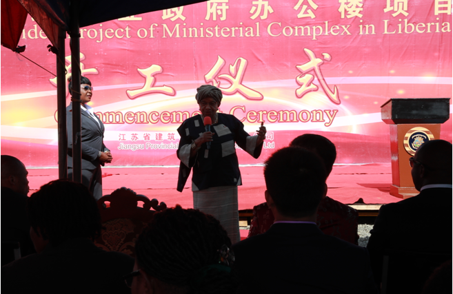 利比里亚总统出席援利政府办公楼开工仪式