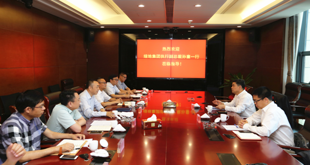 6月29日,绿地集团执行副总裁孙童来到江苏省建调研指导工作,集团公司董事长陈正华、总裁仇天青参加调研。