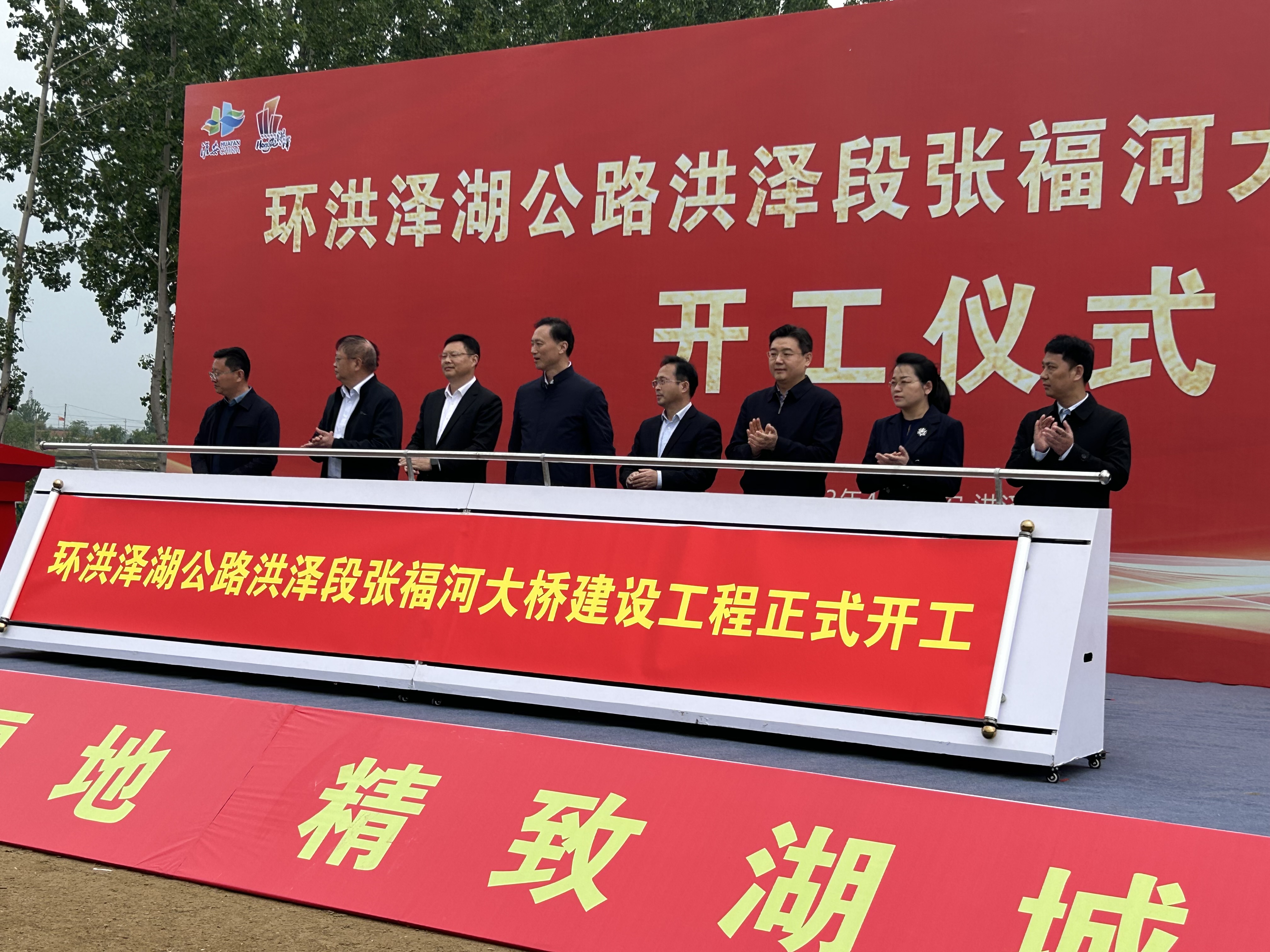 4月25日,由江苏交工承建的的环洪泽湖公路洪泽段张福河大桥建设工程开工典礼在项目现场隆重举行。洪泽区委书记张冲林,淮安市交通运输局局长徐成东,市水利局局长沈启涛,区人大常委会主任杨步新,区委常委、常务副区长宋月霞,副区长应磊等出席。洪泽区长张灏主持开工仪式。