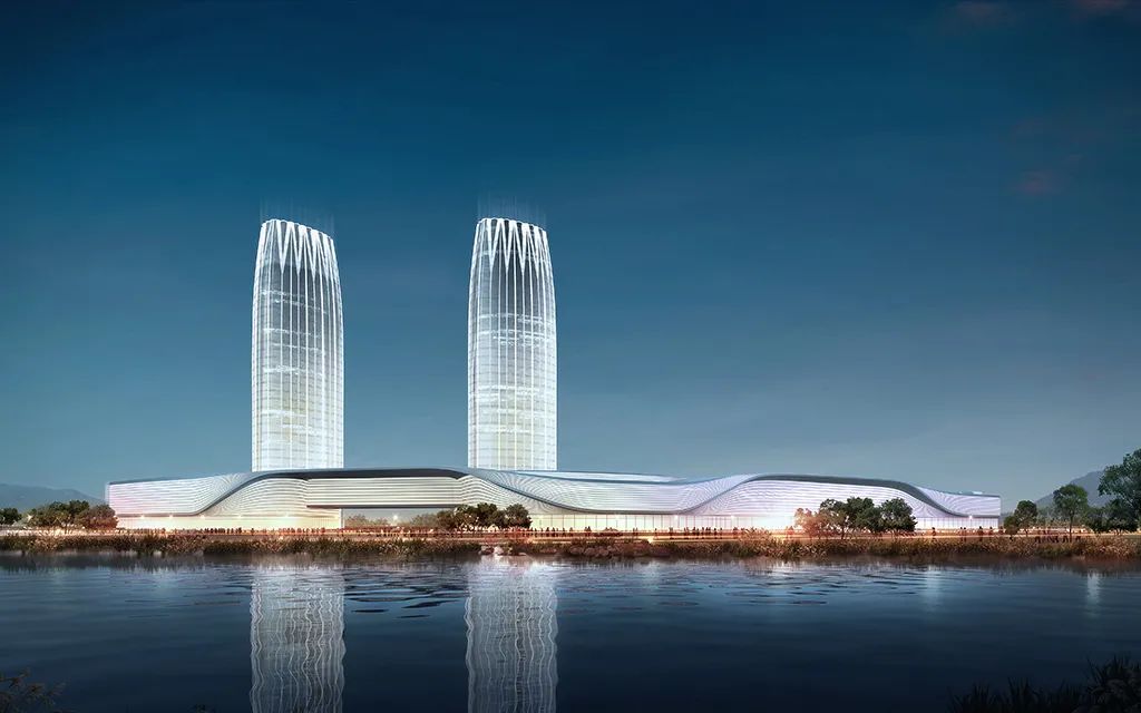 台州国际博览中心项目位于浙江省台州市商贸核心区银泰城西侧,总建筑面积约42万平方米,是集会展、会议、办公、酒店、商业等功能为一体的大型会展综合体。项目包含两栋约149.95米的超高层建筑和10.5万平方米的展馆,共设有7个展厅,3890个标准展位。江苏合发集团承建该项目东区商业、连廊、会议中心、1号展厅、2-4#展厅、5-7#展厅、采光顶等幕墙工程。