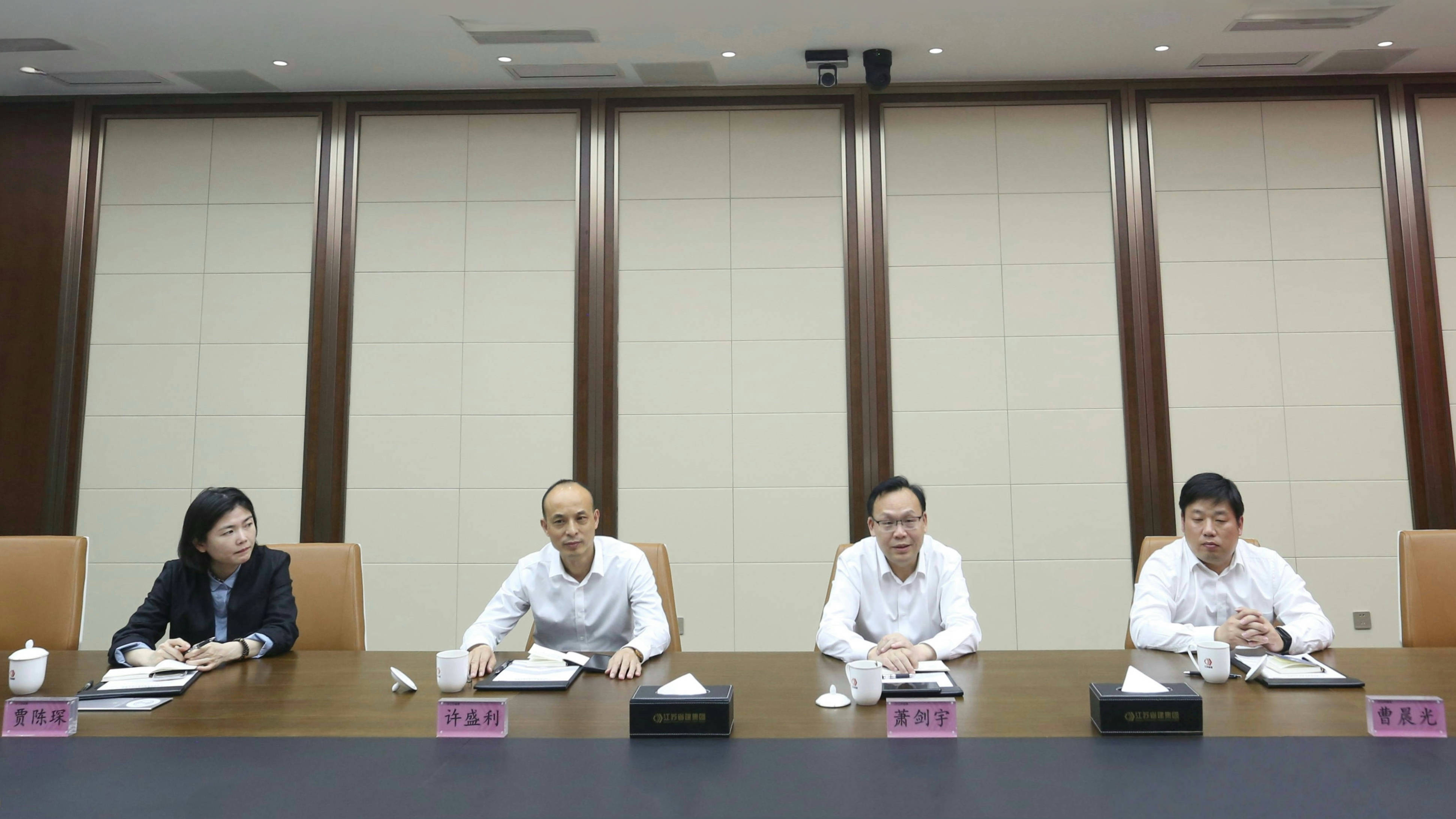 4月10日,集团董事长陈正华会见来访的北京城建集团江苏分公司总经理萧剑宇一行,双方就加强业务合作、推动协同发展进行深入交流。集团总裁蒋宁介绍企业有关情况,党委书记、执行总裁张震宇参加座谈。