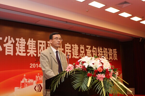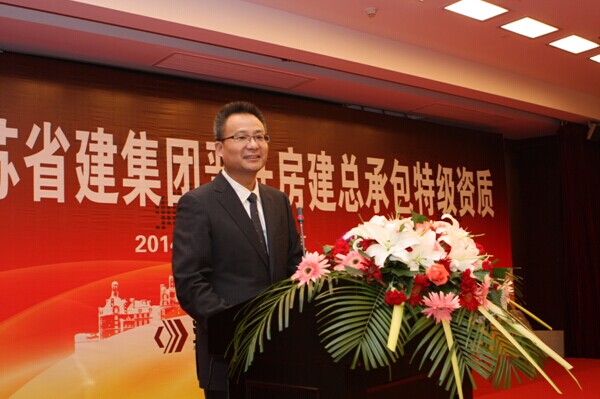 集团公司董事长陈正华发表了热情洋溢的致辞。他在讲话中对为申特工作付出艰辛努力的集团广大员工和所有关心和支持江苏省建申特工作的各级领导表示敬意和感谢。陈正华说,获得房建总承包特级资质是数代省建人梦寐以求的目标,是江苏省建改制以来最重要的战略任务之一。七年前我们与特级资质失之交臂,七年来我们对特级资质的梦想和追求从来没有松懈过。为了实现这一目标,我们成立了以仇天青总裁为组长的特级资质申报领导小组,吃透新标准的精神,制定了详细的房建特级资质升级的申报方案,从“企业资信能力、专业技术人员、科技进步水平、信息化管理、代表工程业绩”等方面,对照标准要求,对集团公司的情况进行全盘梳理,逐一落实。在经过长达七年的申报过程中,集团各单位、各部门通力合作、不懈努力,克服了申报过程中的诸多困难,使江苏省建集团全面达到了《特级资质新标准》规定的各项指标,顺利地通过了资质审查核准过程中的业绩核查、资料审查、实地核查等全部环节,集团成为《特级资质新标准》颁布后七年来江苏省第一家申特成功的企业。