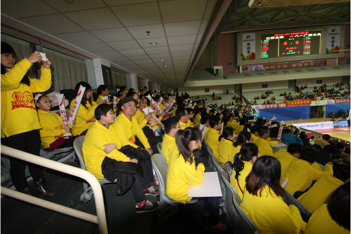 1月10日19点30分,由江苏省建集团冠名赞助的2014-2015中国女子篮球联赛常规赛第二阶段比赛在南京五台山体育馆展开首回合较量。在这场焦点战中,江苏永联队以77比65战胜八一队,取得常规赛第二阶段比赛的“开门红”。集团公司总裁仇天青,党委副书记仇伟明,总裁助理李嘉增、张方兵,省体育局及五台山体育中心相关领导,以及身着统一服装的300名省建员工代表到场观看比赛,为江苏女篮加油助威。