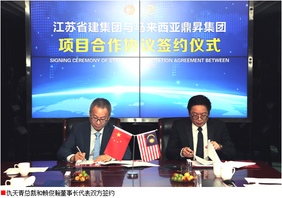 签约仪式上,江苏省建集团总裁仇天青和马来西亚鼎昇集团董事长赖俊瀚分别代表双方致辞。他们在致辞中分别介绍了企业的的基本概况和主要业务发展情况,双方一致表示,将本着“互利共惠”的原则,利用各自优势资源,开展全方位深层次合作,努力实现互利共赢,相信江苏省建与鼎昇集团的合作一定能够取得圆满成功。