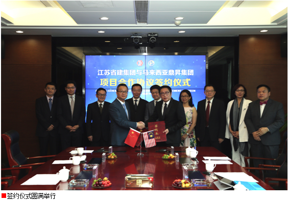 7月17日上午,江苏省建集团与马来西亚鼎昇集团就马来西亚80亿元人民可负担房屋项目举行合作签约仪式。马来西亚财政部副部长拿督李志亮及夫人拿汀李善纯、马来西亚鼎昇集团董事长拿督赖俊瀚,江苏省住房城乡建设厅党组书记顾小平、江苏省商务厅副厅长朱益民、江苏省商务厅外经处处长陆坚、江苏省建筑管理总站站长李震、江苏省建集团总裁仇天青等出席仪式。