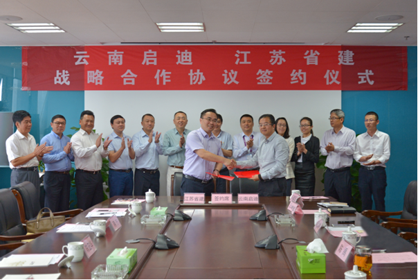 8月10日,集团与云南启迪实业发展有限公司(以下简称“云南启迪”)在昆明签署战略合作协议,双方将依托各自优势和资源,建立战略性伙伴关系。在启迪控股高级副总裁、云南启迪董事长陈禹,江苏省建集团董事长陈正华等领导的见证下,云南启迪副总经理戴红骏、江苏省建集团执行副总裁蒋宁代表合作双方签约。