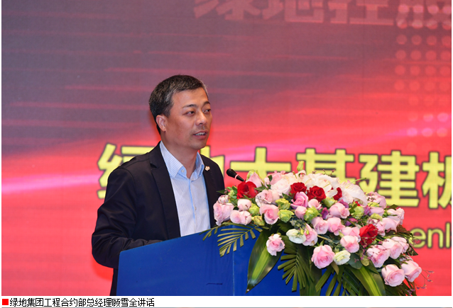 绿地集团工程合约部顾雪全总经理在讲话中介绍了大基建企业总体发展情况,就大基建板块市场竞争力进行了深入分析,希望大基建企业充分利用战略机遇,提升项目管理能力,积极参与市场竞争,提升竞争能力,实现大基建板块快速发展。